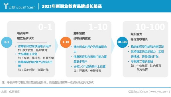 結合新職業(yè)教育適應性、在線化、終身化的三大特征,新職業(yè)教育在供給側人崗高度適配的服務仍然存在優(yōu)化的空間。 第二,新職業(yè)教育的創(chuàng)新和發(fā)展最終還是企業(yè)組織能力的比拼。新職業(yè)教育品牌都會經過建立品牌認知、占領品類未知和穩(wěn)定營收增長凸顯組織能力三個階段。