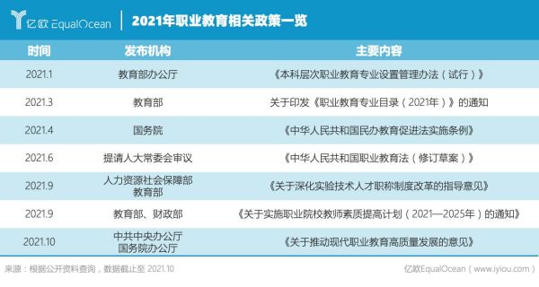 2021年,全國職業(yè)教育大會的召開,會議對職業(yè)教育工作做出重要指示,強調在全面建設社會主義現代化國家新征程中,職業(yè)教育前途廣闊、大有可為,無不體現出我國當前對職業(yè)教育的重視。