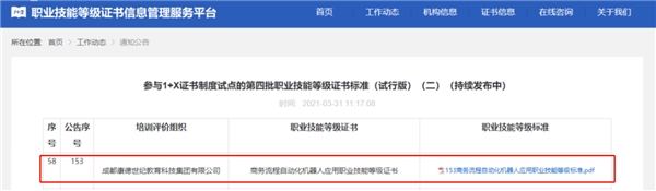 自楷柏財(cái)經(jīng)研發(fā)并由其母公司康德教育集團(tuán)申報(bào)的《商務(wù)流程自動化機(jī)器人應(yīng)用》職業(yè)技能等級標(biāo)準(zhǔn)及其證書獲批教育部第四批1+X證書制度試點(diǎn)以來,憑借行業(yè)領(lǐng)先的證書標(biāo)準(zhǔn)、注重實(shí)操應(yīng)用的課程特色,受到企業(yè)雇主的廣泛認(rèn)可和好評,并與全國多所職業(yè)院校達(dá)成合作,共同推動RPA技能人才培養(yǎng)。