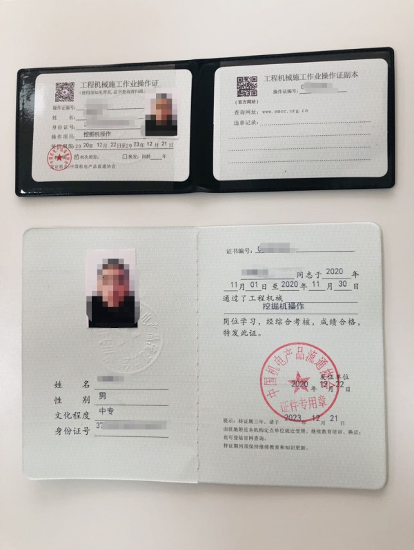 | 建設(shè)工程機(jī)械施工節(jié)能作業(yè)操作證 | 挖掘機(jī)操作員 | 建設(shè)工程機(jī)械委員會(huì) | 2寸電子版照片1張,身份證和學(xué)歷證復(fù)印件1張 |