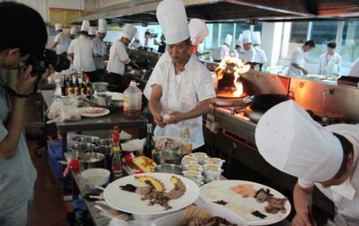 2、技能學(xué)習(xí):烹飪基本功(包含刀工、勺工)、中餐烹調(diào)常用的炒、爆、熘、扒、燒、燴等30種烹調(diào)方法,主要涉及熱菜80個品種,涼菜45個品種,冷拼基 本功及高檔花色拼盤6個品種,可參與第二課堂學(xué)習(xí)雕刻技術(shù)等其它選修課技能。