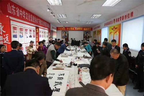 出席本次活動的領導有山東省政協(xié)原副主席、黨組原副書記、全國中華文化促進會副主席、山東省中華文化促進協(xié)會黨組織負責人喬延春同志,中共山東省委原副秘書長、山東省政協(xié)文史委主任杜文彬同志,山東省社科聯(lián)原副主席、黨組書記、山東省中華文化促進協(xié)會主席劉德龍同志,山東省原人大常委會委員、原東營市委書記張秋波同志,東營市政協(xié)原主席呂雪萍同志,山東省中華文化促進協(xié)會副主席劉曉東同志,山東省中華文化促進協(xié)會常務理事武金文同志,山東省中華文化促進協(xié)會常務理事李孝玉同志,東營市中華文化促進協(xié)會常務副主席柴玉寶同志,山東省中華文化促進協(xié)會理事、東營金盾司法學校校長楊萬里同志等領導,山東藝術學院教授、碩士研究生導師、山東省中華文化促進協(xié)會書畫院院長劉玉泉同志等十幾名書畫家等。