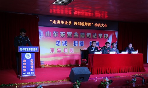 為營造良好的高考氛圍,動員全體畢業(yè)生以良好的姿態(tài)投入緊張有序的復(fù)習(xí)中。10月22日下午,山東東營金盾司法學(xué)校畢業(yè)班全體師生齊聚大禮堂,隆重召開“走進(jìn)畢業(yè)季 再創(chuàng)新輝煌”動員大會。出席大會的領(lǐng)導(dǎo)有常務(wù)副校長劉寶存,副校長李長峰,教務(wù)處主任范麗娜,學(xué)生處大隊長王永強(qiáng),大會由大隊長王永強(qiáng)同志主持。