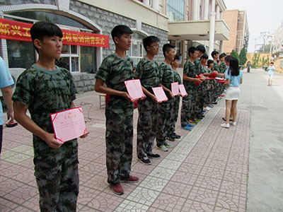 白麗校長在教官的陪同下依次檢閱了各個受訓方陣。接著軍訓成果匯報表演開始,整齊的步伐、劃一的動作、昂揚的斗志、嘹亮的口號充分展現(xiàn)了新興學子規(guī)范的舉止、嚴明的紀律和良好的精神風貌,展示了同學們刻苦拼搏的軍訓成果。匯報表演博得了在場領導、教官、教師的陣陣掌聲,贏得了大家的一致好評。隨后校領導們分別向獲得各項榮譽及優(yōu)秀方隊與優(yōu)秀個人頒發(fā)獎狀。同學代表發(fā)言,表達了對教官和老師們得感謝并表示在今后的學習生活中謹記教官的教導,用頑強的意志克服學習道路上的一切困難。田小霞副校長代表學校為軍訓閉營儀式總結發(fā)言。他感謝了參訓教官和班主任的辛勤付出,同時對同學們圓滿完成軍訓任務表示祝賀并希望全體同學以軍訓作為起點,過一個有意義的技校生活。白麗校長并向培訓基地贈送錦旗。