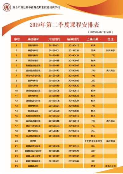 煙臺(tái)波絲蒂糕點(diǎn)培訓(xùn)學(xué)校創(chuàng)立于2004年,是煙威地區(qū)首家中西糕點(diǎn)專業(yè)培訓(xùn)機(jī)構(gòu),是煙臺(tái)市人力資源和社會(huì)保障局指定的正規(guī)技能培訓(xùn)基地,也是培養(yǎng)中、西式面點(diǎn)師,中、西式烹調(diào)師,茶藝師、調(diào)酒師、咖啡師、公共營(yíng)養(yǎng)師的專業(yè)搖籃。煙臺(tái)波絲蒂糕點(diǎn)培訓(xùn)學(xué)校學(xué)員可以參加全國(guó)統(tǒng)一的職業(yè)資格考試,獲得全國(guó)人社部職業(yè)資格證書(shū)。零基礎(chǔ),包教包會(huì)!