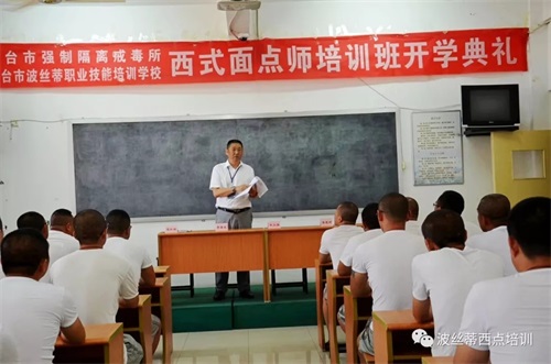 為進(jìn)一步擴(kuò)大煙臺(tái)市強(qiáng)制隔離戒毒所“文化育人”管理新模式的成效,鼓勵(lì)戒毒學(xué)員積極參與習(xí)藝活動(dòng),掌握一定的就業(yè)謀生技能,幫助他們盡快融入社會(huì)。近日,2019年首期煙臺(tái)市強(qiáng)制隔離戒毒所西式面點(diǎn)班在煙臺(tái)波絲蒂學(xué)校開班了,此次培訓(xùn)是煙臺(tái)市人力資源和社會(huì)保障局公共就業(yè)和人才服務(wù)中心、煙臺(tái)市強(qiáng)制隔離戒毒所聯(lián)合煙臺(tái)市波絲蒂職業(yè)技能培訓(xùn)學(xué)校共同舉辦,煙臺(tái)市人力資源和社會(huì)保障局公共就業(yè)和人才服務(wù)中心培訓(xùn)科李科長(zhǎng),煙臺(tái)市強(qiáng)制隔離戒毒所劉所長(zhǎng),教育科李科長(zhǎng),波絲蒂西點(diǎn)培訓(xùn)學(xué)校陳校長(zhǎng)共同出席了開班儀式。