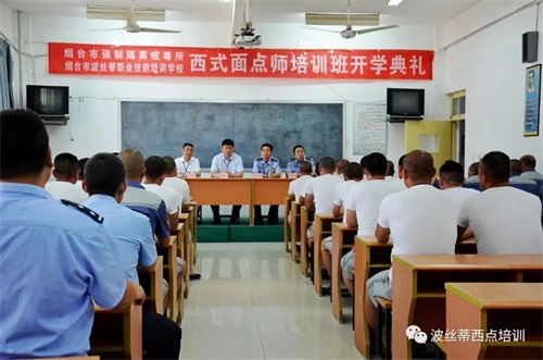 為進(jìn)一步擴(kuò)大煙臺市強(qiáng)制隔離戒毒所“文化育人”管理新模式的成效,鼓勵戒毒學(xué)員積極參與習(xí)藝活動,掌握一定的就業(yè)謀生技能,幫助他們盡快融入社會。近日,2019年首期煙臺市強(qiáng)制隔離戒毒所西式面點(diǎn)班在煙臺波絲蒂學(xué)校開班了,此次培訓(xùn)是煙臺市人力資源和社會保障局公共就業(yè)和人才服務(wù)中心、煙臺市強(qiáng)制隔離戒毒所聯(lián)合煙臺市波絲蒂職業(yè)技能培訓(xùn)學(xué)校共同舉辦,煙臺市人力資源和社會保障局公共就業(yè)和人才服務(wù)中心培訓(xùn)科李科長,煙臺市強(qiáng)制隔離戒毒所劉所長,教育科李科長,波絲蒂西點(diǎn)培訓(xùn)學(xué)校陳校長共同出席了開班儀式。