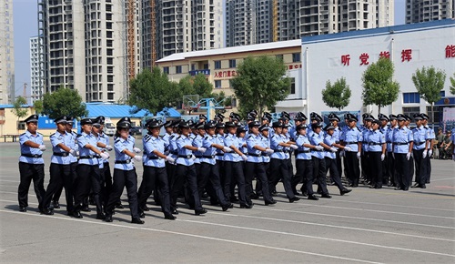 國(guó)歌奏響,全場(chǎng)莊嚴(yán)而肅穆。經(jīng)過軍訓(xùn)洗禮的新生,精神飽滿、軍姿威嚴(yán)、隊(duì)列整齊的樹立于操場(chǎng),嘹亮的口號(hào)響徹校園上空。提前批一區(qū)隊(duì)、二區(qū)隊(duì)依次進(jìn)行了隊(duì)列表演。他們步伐矯健、士氣昂揚(yáng),充分展示了東營(yíng)金盾司法學(xué)校新學(xué)子朝氣蓬勃、奮發(fā)向上的精神風(fēng)貌。