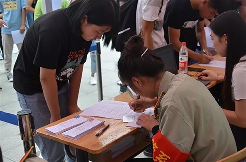 紅色的迎新條幅、貼心的指示標(biāo)語,各院系的迎新工作人員和學(xué)生志愿者熱情引導(dǎo),校園里四處洋溢著歡樂、溫馨、和諧的氣氛。