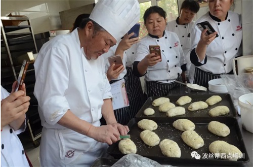 今天(9月5日)是日本烘焙大師森下英樹老師在煙臺(tái)波絲蒂開課的第二天,今天的課程被安排得非常滿,大家要跟隨老師一起制作八種面包,大家在期待中開始了新一天的學(xué)習(xí)。