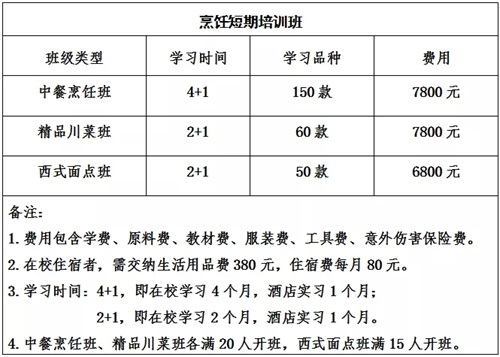 面向社會招收烹飪愛好者,身體健康,具有健康證明(健康證)。烹飪短期班年齡在18周歲以上,家庭廚藝班無年齡限制。