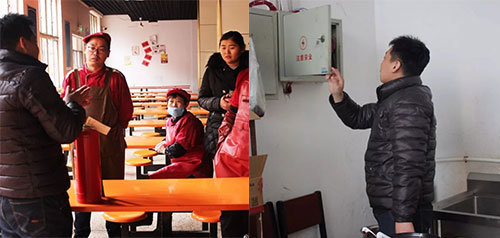 田主任對于侯科長提出的問題一一記錄,并當場要求工作人員整改,確保學生用餐萬無一失。之后,侯科長又對學校的消防安全進行了檢查,對存在安全隱患的情況提出整改,并現(xiàn)場教餐廳工作人員如何使用滅火器。