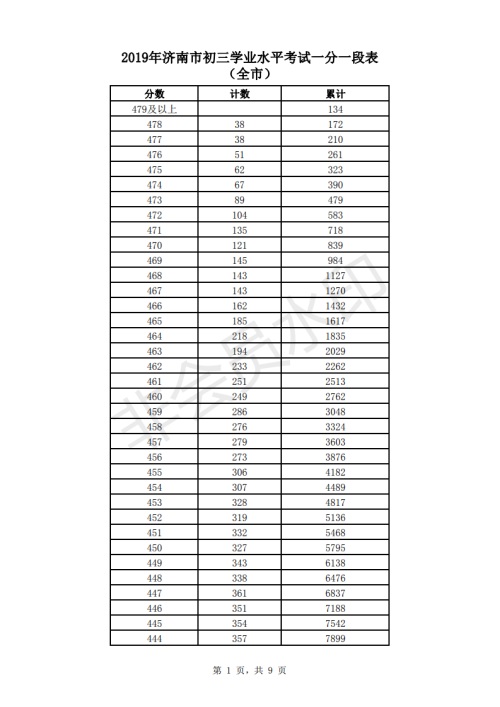 2019年濟南市中考成績一分一段表出爐啦,具體詳情如下所示: