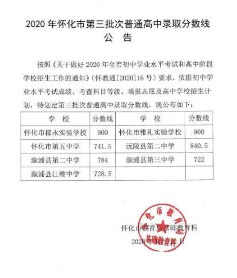 剛剛,懷化市教育局公布了本市中考第三批次錄取分數(shù)線,其中郡永實驗中學和雅禮實驗中學均為900分,具體情況如下: