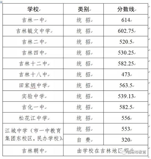 2020年吉林市中考城區(qū)高中錄取分數(shù)線發(fā)布 說明 一、重點高中最低錄取控制分數(shù)線為450分,一般高中最低錄取控制分數(shù)線為320分。 二、中高職貫通培養(yǎng)、