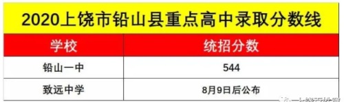 2020年江西上饒中考鉛山縣重點高中錄取分數(shù)線