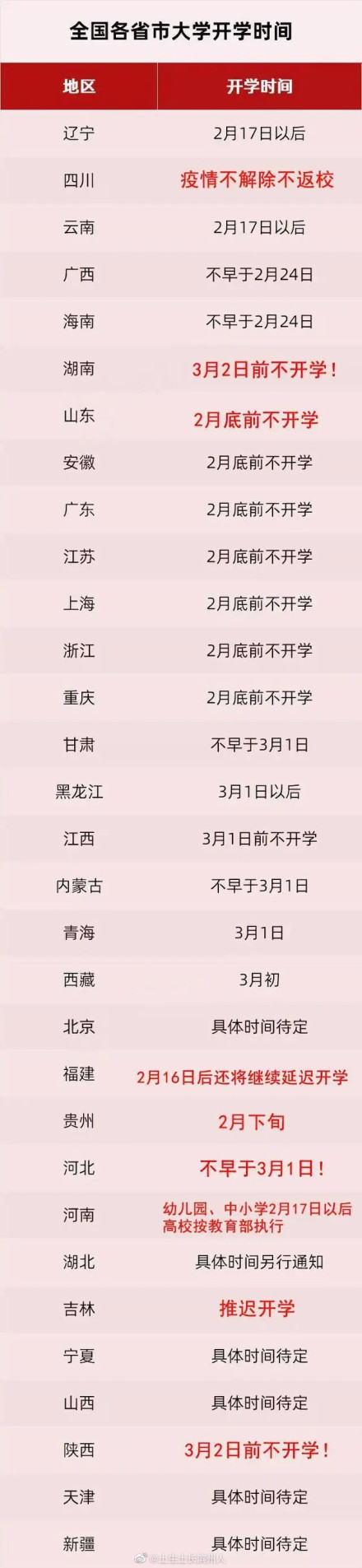 #教育部回應(yīng)高考是否推遲# #教育部通知延期開學(xué)# 山東,河南,湖南,陜西……31省市最新開學(xué)時(shí)間匯總,你啥時(shí)候開學(xué)?