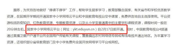 周知!國家中小學(xué)網(wǎng)絡(luò)云平臺(tái)2月17日開通 教育部整合國家、有關(guān)省市和學(xué)校優(yōu)質(zhì)教學(xué)資源,在延期開學(xué)期間開通國家中小學(xué)網(wǎng)絡(luò)云平臺(tái)和中國教育電視臺(tái)空中