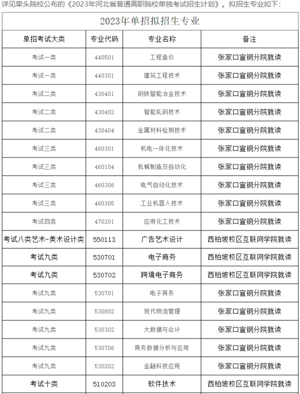 (3)學(xué)校2023年單獨(dú)招生專業(yè)均為互聯(lián)網(wǎng)學(xué)院及宣鋼分院所屬專業(yè),待單招報(bào)名結(jié)束后,根據(jù)報(bào)名情況擬定分專業(yè)招生計(jì)劃。