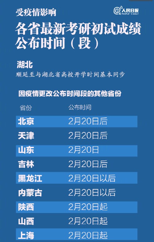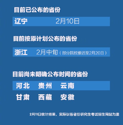 受疫情影響,湖北省教育考試院日前發(fā)布通知稱(chēng),考研初試成績(jī)公布將與湖北省高校開(kāi)學(xué)日期同步。截至目前,全國(guó)#多省推遲考研成績(jī)公布時(shí)間#,具體以各省研究生招生網(wǎng)為準(zhǔn)。