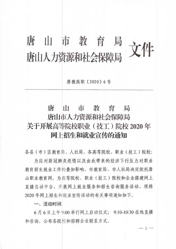 相關(guān)閱讀:唐山市教育局唐山市人社局 關(guān)于開展網(wǎng)上招生和就業(yè)宣傳的通知