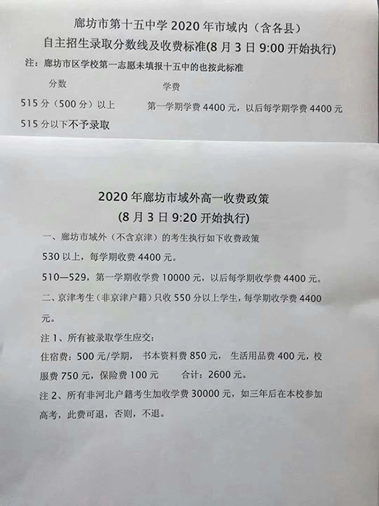 廊坊市十五中 2020廊坊市十五中錄取分數(shù)線