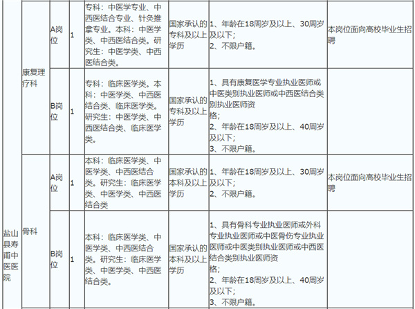招聘崗位所需的具體條件詳見《2021年鹽山縣壽甫中醫(yī)醫(yī)院公開招聘事業(yè)單位工作人員崗位信息表》(附件1)。留學(xué)回國(guó)人員和其他海外、外國(guó)學(xué)歷學(xué)位獲得者的專業(yè)名稱與招聘崗位要求專業(yè)名稱不完全一致,但所學(xué)專業(yè)課程與招聘崗位專業(yè)課程大部分相同,且符合該崗位所需要的其他條件的,也可報(bào)考該招聘崗位。