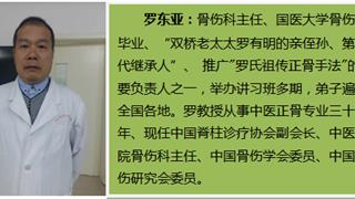 羅東亞:骨傷科主任、國醫(yī)大學(xué)骨傷系畢業(yè)、“雙橋老太太羅有明的親侄孫、第七代繼承人”、 推廣"羅氏祖?zhèn)髡鞘址?的主要負(fù)責(zé)人之一,舉辦講習(xí)班多期,弟子遍及全國各地。羅教授從事中醫(yī)正骨專業(yè)三十余年、現(xiàn)任中國脊柱診療協(xié)會副會長、中醫(yī)醫(yī)院骨傷科主任、中國骨傷學(xué)會委員、中國骨傷研究會委員。